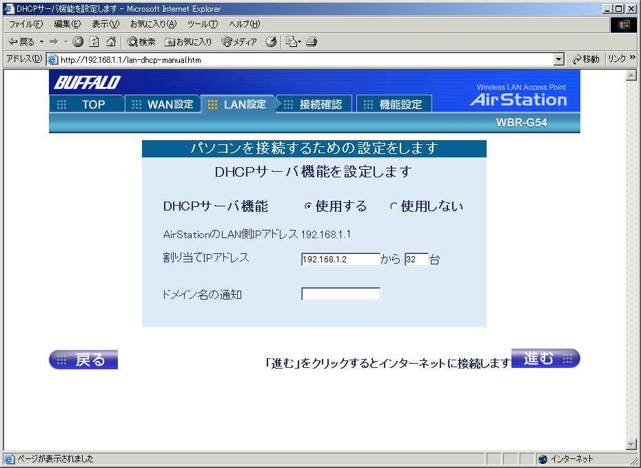 【12】 「DHCPサーバ機能の設定画面」が表示されます。