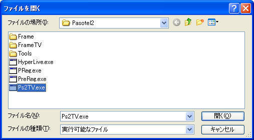 - c:\Program Files\KES\Pasotel2\Ps2TV.exeを選択し、開くをクリックします。
