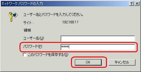(3)パスワードを入力後、「OK」ボタンをクリックしてください。