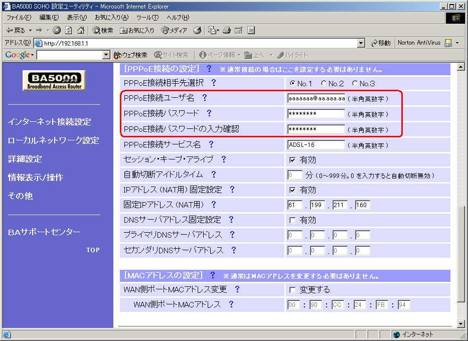 【9】(1)「MACアドレスの設定」は、入力しないでください。