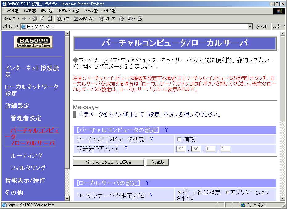 【17】 「バーチャルコンピュータ/ローカルサーバの設定」画面が表示されます。
